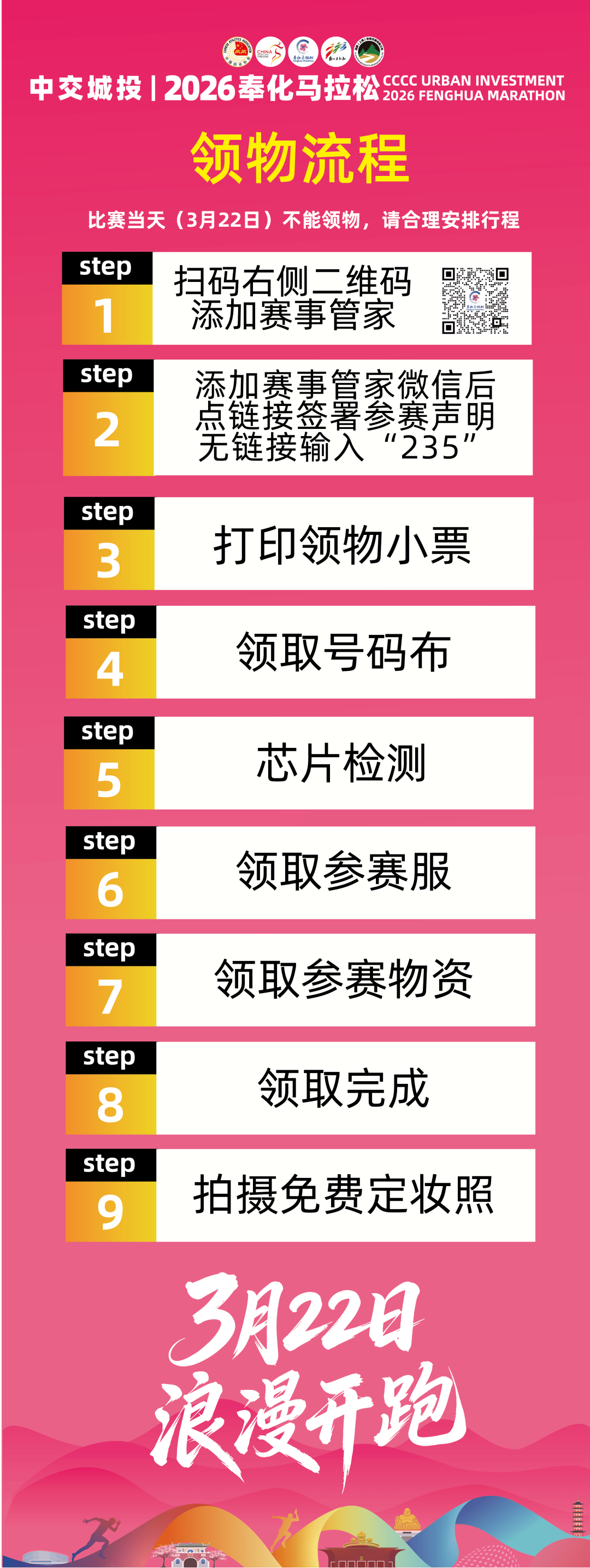 参赛选手须本人亲自前往现场,携带本人报名时所用的有效证件原件或电子身份证、驾照等其他含本人头像及身份证号码的证件,通过人工通道进行核实无误后方可入场领取参赛物品。不接受以任何形式代领参赛物品,且赛前或赛后无任何形式的邮寄服务。