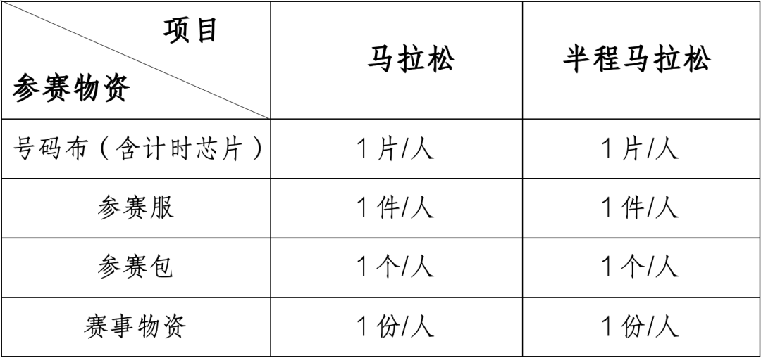 注:马拉松、半程马拉松选手每人两块号码布,一块大号码布(含计时芯片)和一块小号码布(贴在参赛包正面存衣用)。