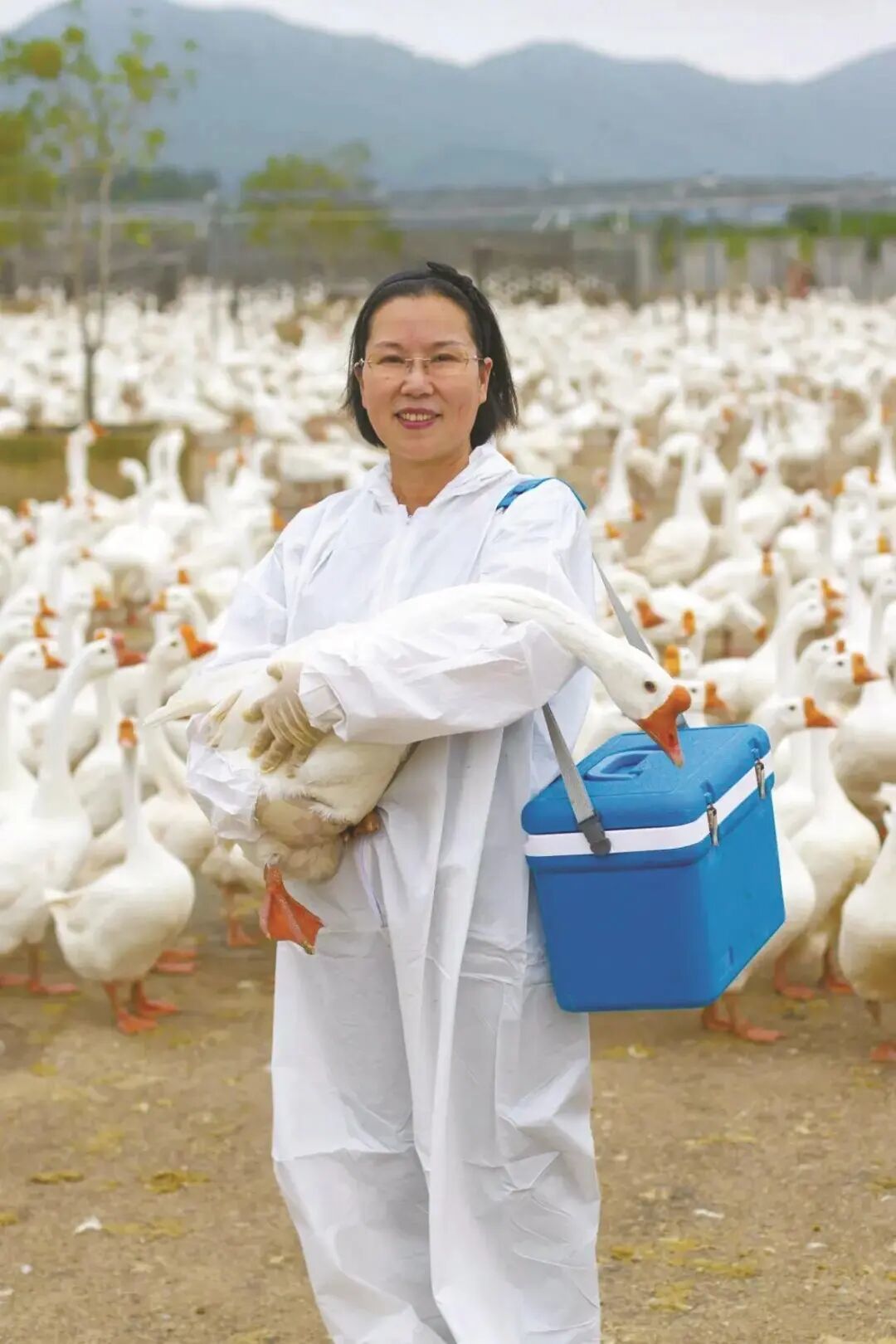 陈淑芳深耕畜牧科研30余年,成了象山养殖户特别是鹅农口中的“鹅博士”“女华佗”。2025年,陈淑芳围绕浙东白鹅育种、畜牧业高质量发展等主题,赴20多个县市调研。平日里,她电话24小时在线,手机里存着3000多位养殖户的号码。
