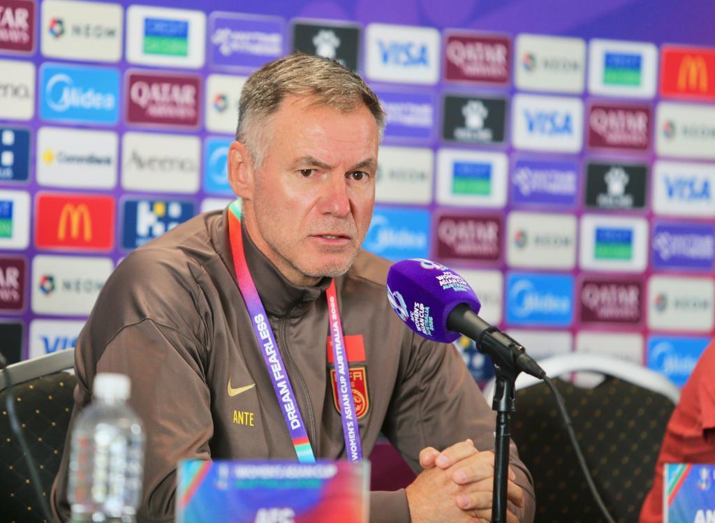 3月13日,中国女足主教练安特·米利西奇在新闻发布会上。新华社发(周丹摄)