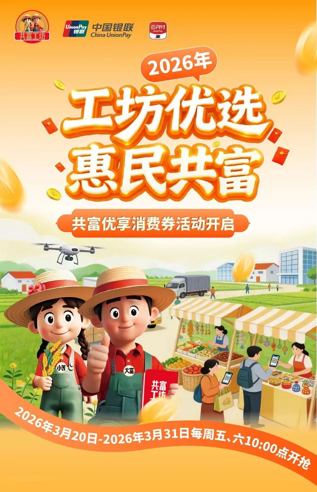 活动细则及共富工坊直营网点,请在活动上线后进入云闪付App活动页面查看。