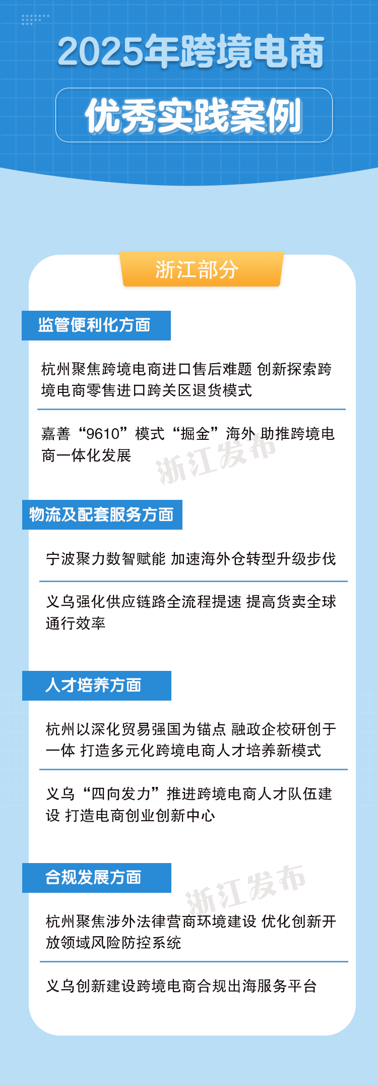 近日,商务部正式发布2025年跨境电商优秀实践案例,全国共有30个案例入选。浙江共有8个典型案例成功入围,入围数量位居全国第一。其中,杭州、义乌分别有3个案例入选,宁波、嘉兴分别有1个案例入选。