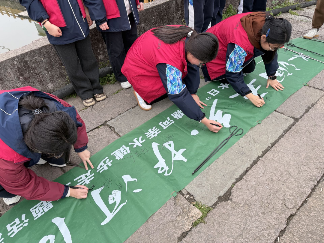 本次活动采用“一校一点、同步启动、全域联动、特色鲜明”的形式,各校依托自身办学优势,打造了各具特色、亮点纷呈的护水实践场景。宁波市五乡中学立足五乡镇千年古运河河段,以“水润五乡·护河同行”为主题开展巡河健走及签名活动,引导学生爱护家乡河道、守护生态家园。宁波艺术实验学校、鄞州赫德实验学校以艺术倡议、中英双语宣讲传递节水理念,充分展现宁波学子的良好风貌。