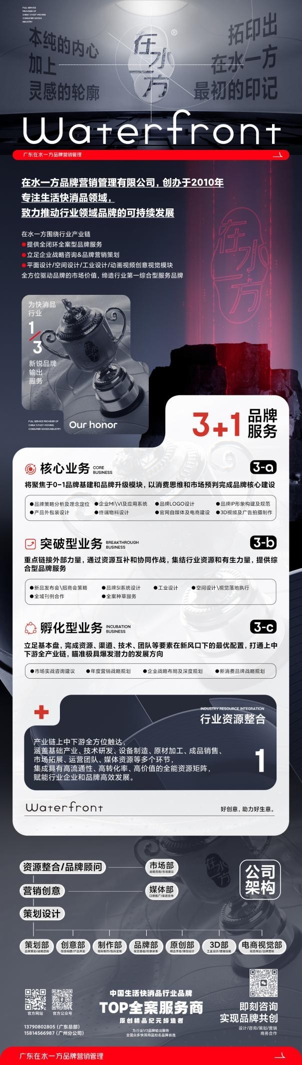 波诡云谲的行业动向,内卷严重的品类市场。我们相信,唯有高瞻远瞩,方能势如破竹。在水一方品牌营销管理集结核心团队内外兼修,精于顶尖创意,达于高效策略,成于实战落地,始终致力于以全案思维决策与行动,破局行业内卷,打通品牌增长闭环,助力企业品牌高溢价发展。