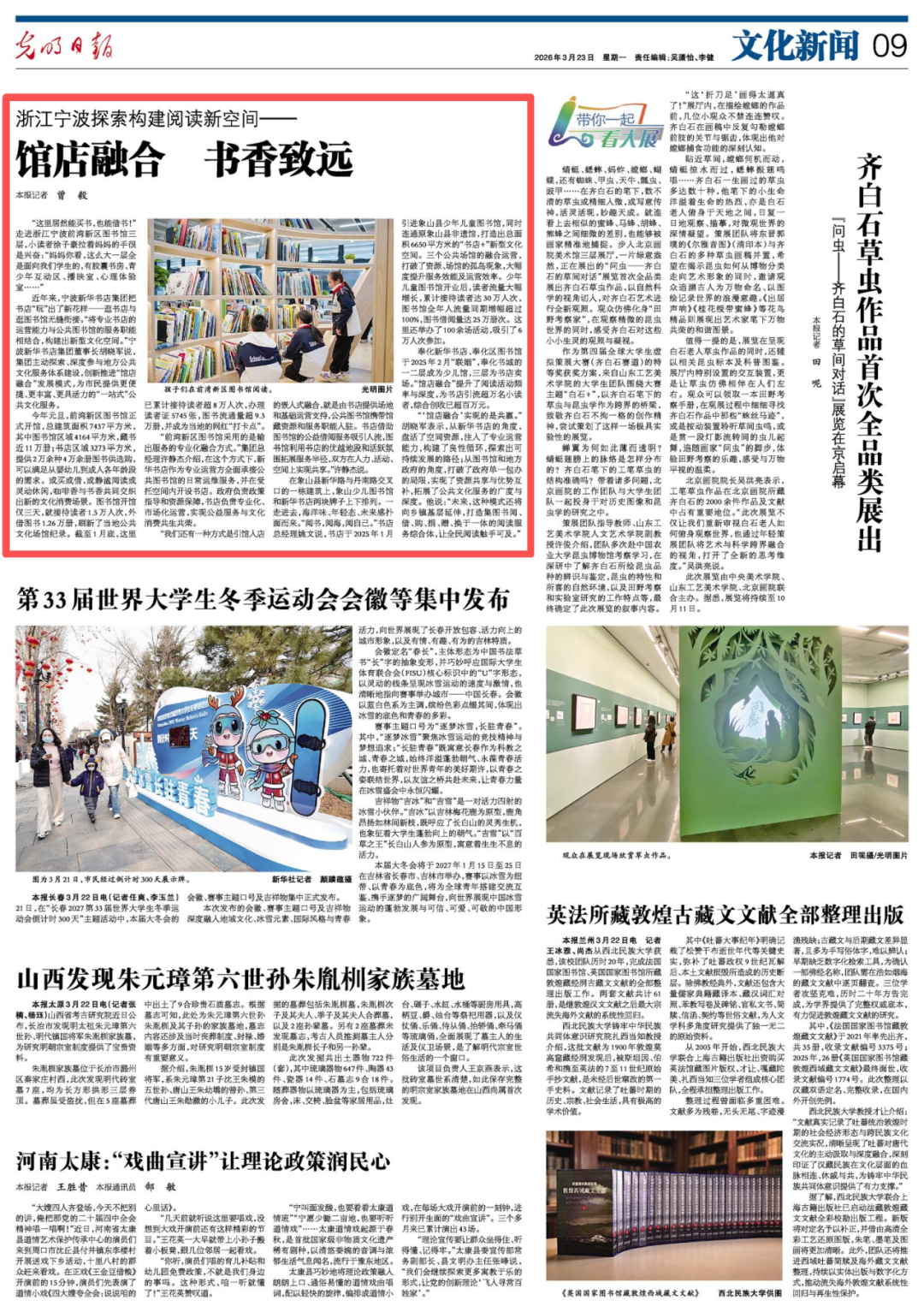 日前,《光明日报》刊发《浙江宁波探索构建阅读新空间——馆店融合 书香致远》,聚焦书店“玩”出新花样,实现逛书店与逛图书馆无缝衔接。其中关注了象山少儿图书馆和新华书店采用引馆入店的嵌入式融合,盘活空间资源,构建良性循环,探索出可持续发展的路径。