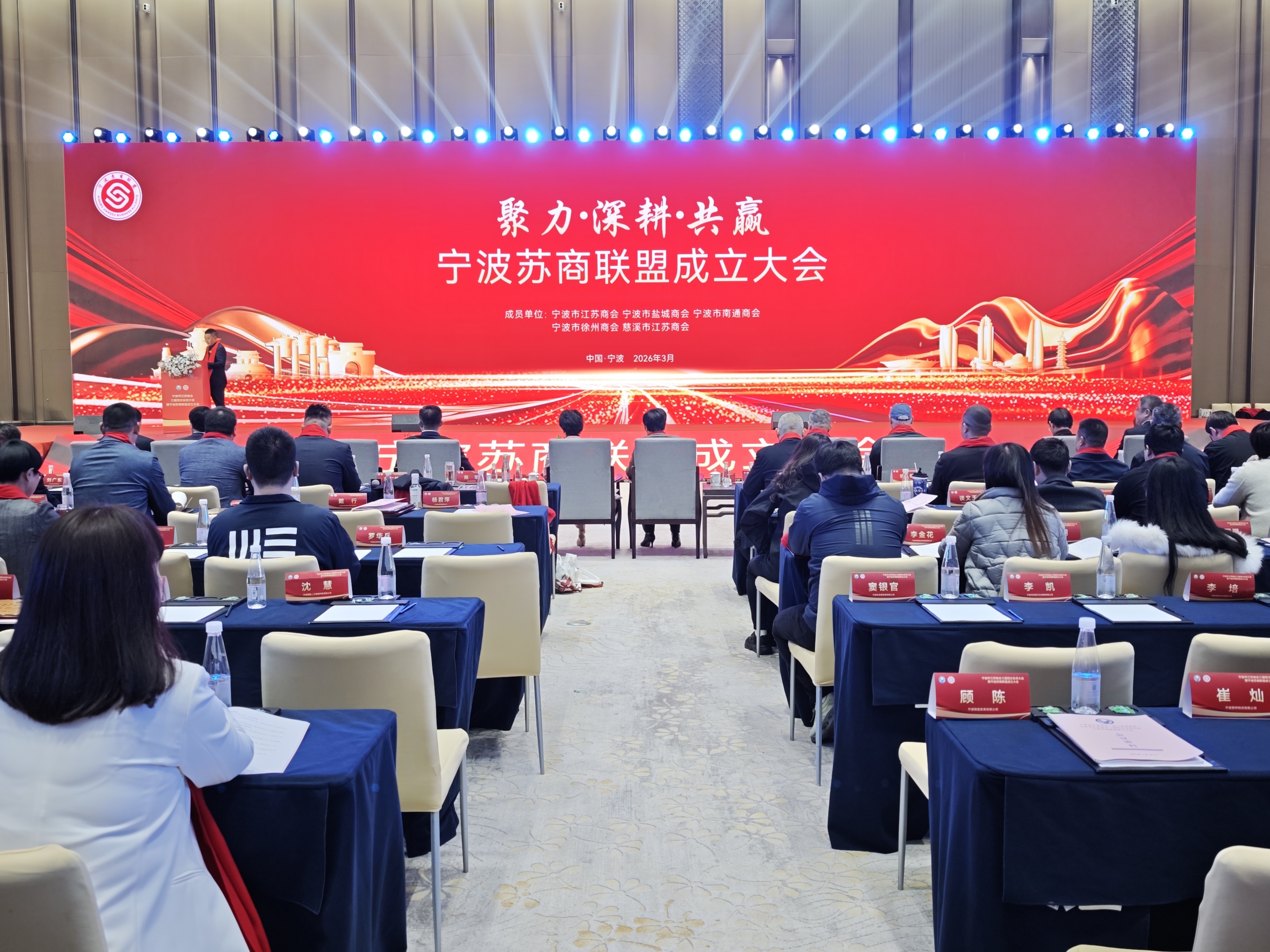 3月29日,以“聚力 深耕 共赢”为主题的宁波苏商联盟成立大会暨系列活动隆重举行。活动依次召开理事会、监事会、会员大会及联盟成立大会。江苏省工商联、宁波市政协、市工商联等相关领导莅临出席,在甬江苏乡贤、异地兄弟商会、境外江苏商会代表及特邀嘉宾等800余人齐聚一堂,共叙乡情友谊,共话苏商发展,共绘苏甬两地合作共赢蓝图。