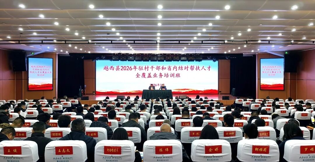 近日,越西县2026年驻村干部和省内结对帮扶人才全覆盖业务培训班,在越西县新型农民培训基地正式开班。越西县委常委、统战部部长、县总工会主席、县政府副县长马海木呷出席开班仪式并讲话。来自宁波赴凉山东西部协作帮扶工作队的部分干部人才也参加了此次培训,与本地驻村干部共同学习交流。