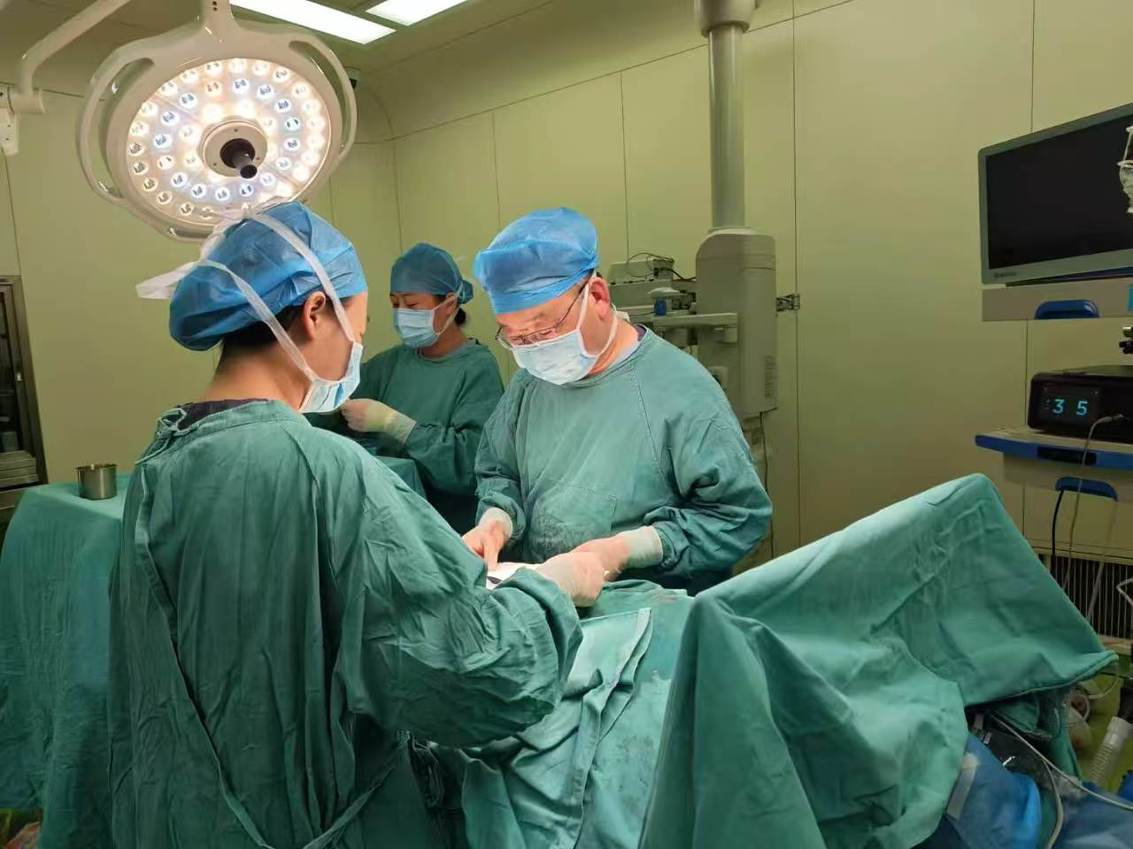 时间就是生命。医院立即启动危重孕产妇抢救预案,而作为鄞州驻点帮扶的专家,艾铁盔副主任医师临危受命,担当起抢救的主心骨。在艾主任的沉稳指挥下,手术室、麻醉科、输血科等多学科团队火速集结、无缝衔接。无影灯下,艾铁盔主任凝神屏气,精准地完成止血、子宫修补等关键操作,每一刀、每一针都分秒必争。经过两个多小时的极限鏖战,患者出血被成功控制,生命体征逐渐趋于平稳,手术宣告成功。