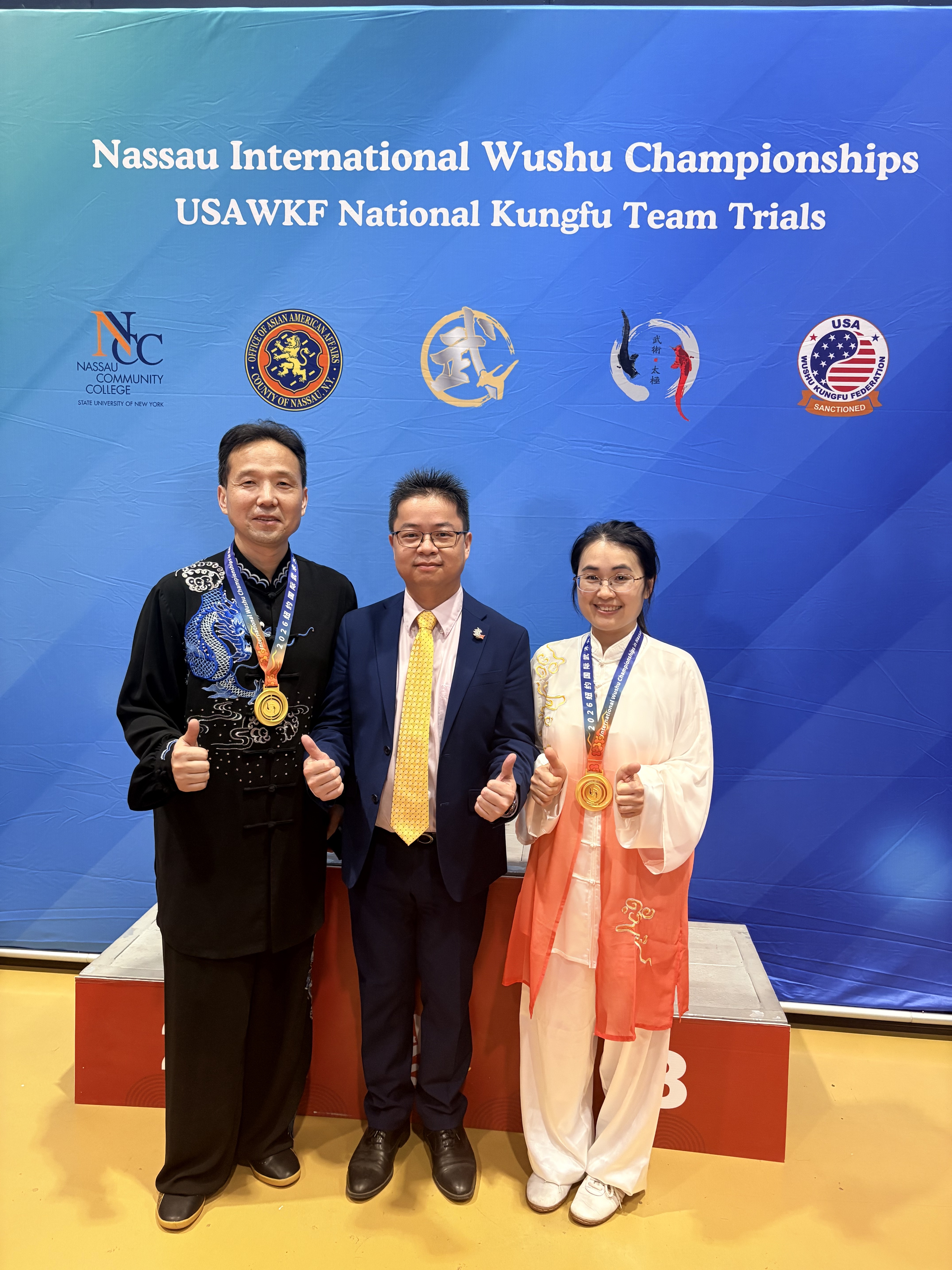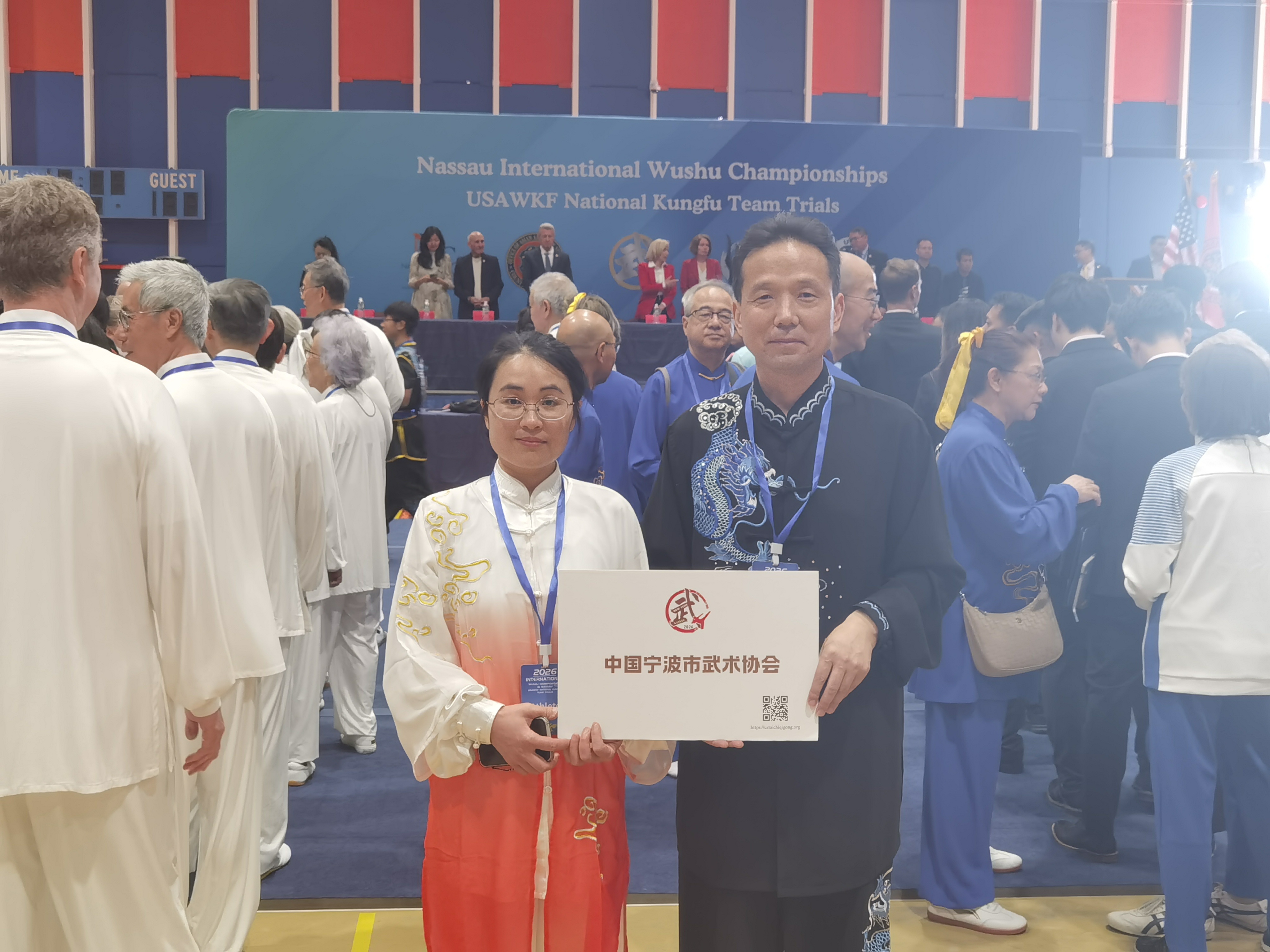 本届赛事由美国武术联合会和纽约州纳苏郡共同主办,来自全美14个州及加拿大、中国的300余名运动员同场竞技。为进一步加强中美地方人文交流、展示中华武术文化、讲好浙江故事,应纳苏郡特别邀请,宁波市选派市武术协会太极拳分会陈高产、裘焚钏2名选手赴美参赛。他们一路过关斩将、气势如虹。最终,陈高产一人独揽5金,裘焚钏斩获3金,充分展现了二人深厚的功底与昂扬的斗志。
