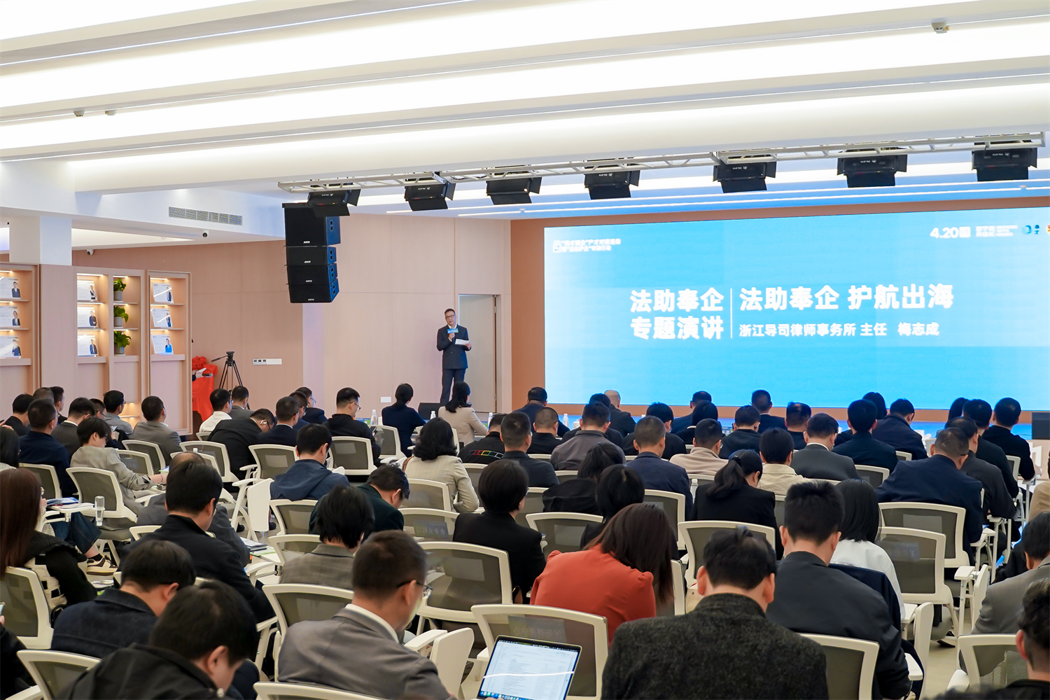 在“法治护企”篇章,浙江导司律师事务所主任梅志成以《法助奉企 护航出海》为题,围绕涉外知识产权保护等话题发表了破题演说。随后,区委组织部(人才办)、区司法局与律所代表签署法律服务团队合作协议,标志“政律协同”法律服务新机制正式落地。同时,奉化区涉外法律服务平台在现场揭牌,为企业提供涉外法律一站式咨询、全周期合规护航服务,为奉化企业“走出去”、外资“引进来”提供高效法律支持,以法治之力保障企业行稳致远、扬帆海外。